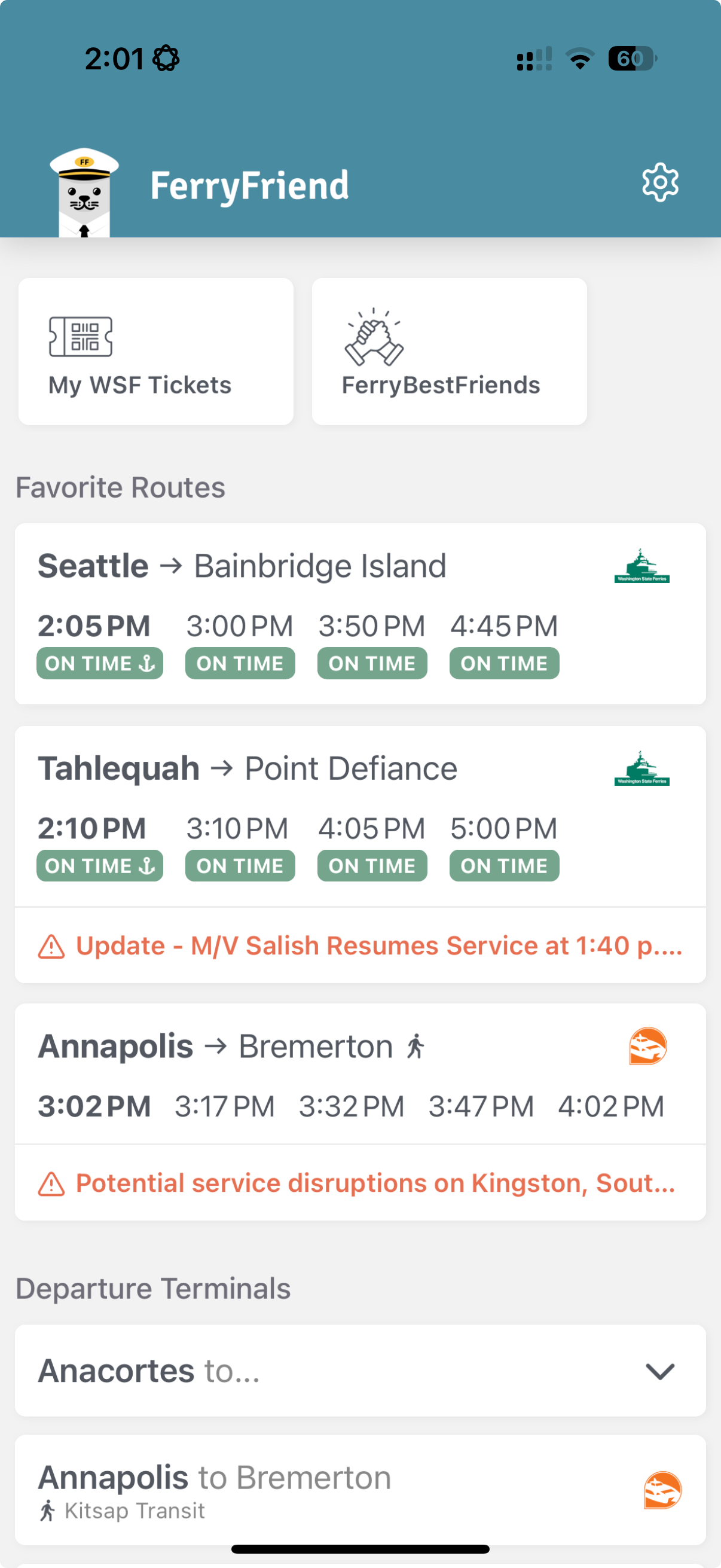 I created FerryFriend a decade ago because I was frustrated with the Washington State Ferries' confusing information system. My goal was simple: make ferry travel easier for everyone who depends on it. What began as a personal solution has grown beyond my wildest expectations, now serving tens of thousands across Puget Sound. As FerryFriend has evolved from a small passion project, it's grown into something that requires significant time and resources to maintain.